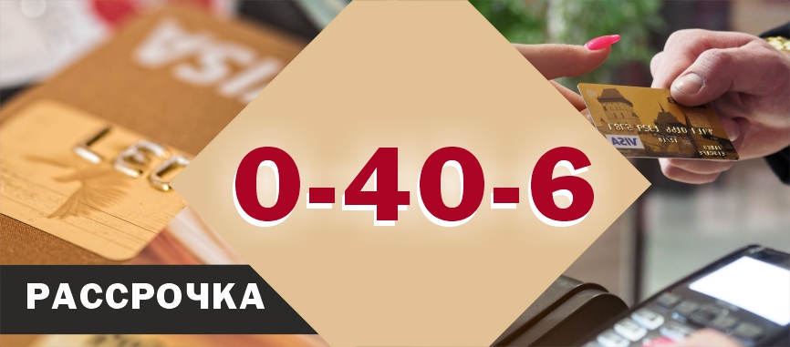 Рассрочка «0-40-6»: Первоначальный взнос: от 40% / Переплата: 0 ₸. / Срок кредитования: 6 мес.